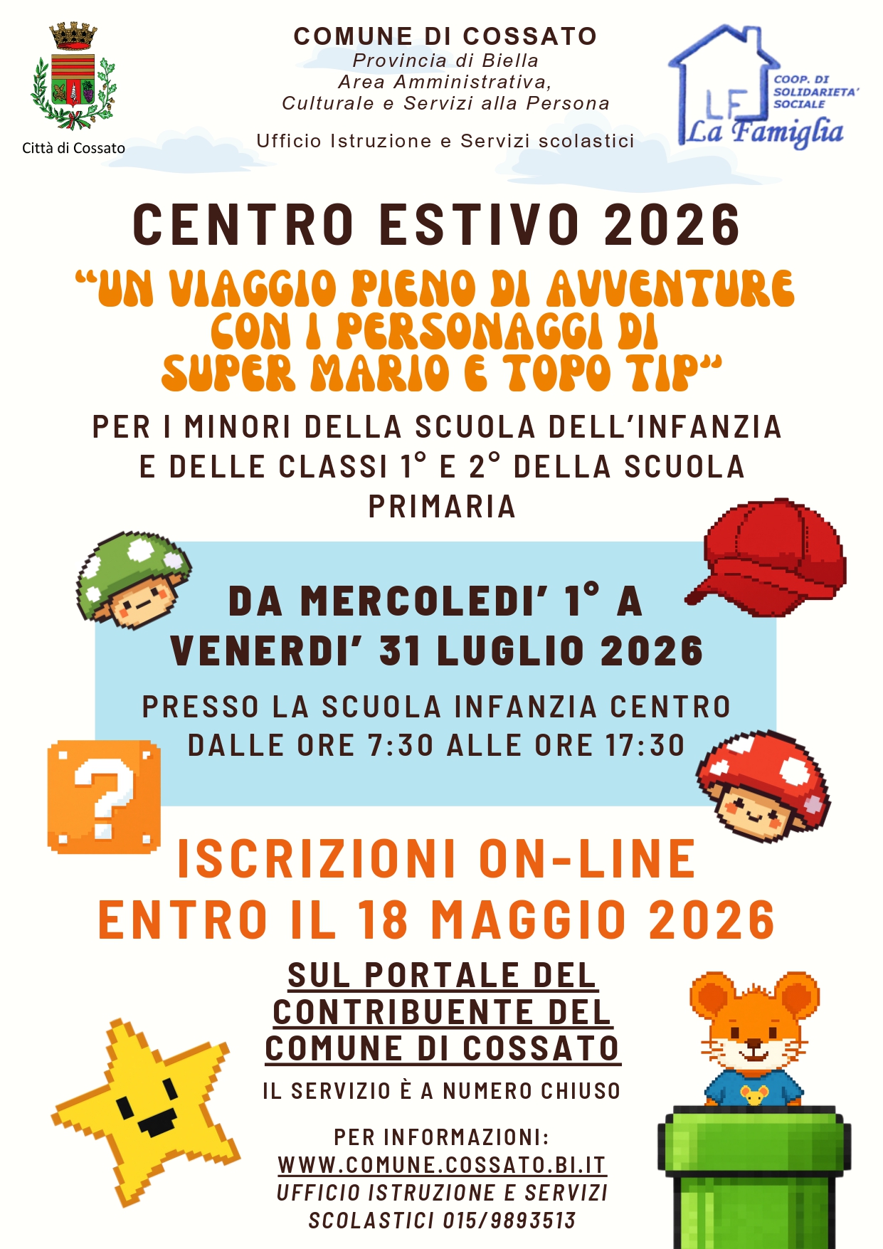 Apertura iscrizioni centro estivo da lunedi’ 27 aprile a lunedi’ 18 maggio 2026